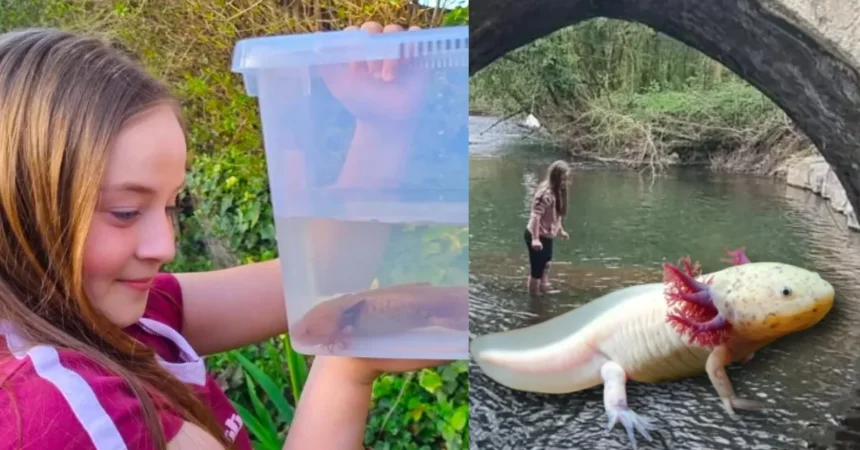 Una niña de 10 años encontró un ajolote mexicano en un río de Gales, Reino Unido. El hallazgo ocurrió mientras se encontraba de campamento con su familia cerca del río Ogmore.